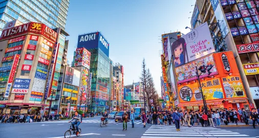 Akihabara: khu phố điện tử và văn hóa anime – manga nổi tiếng, hấp dẫn với các cửa hàng công nghệ, figure, game và không khí sôi động đặc trưng.