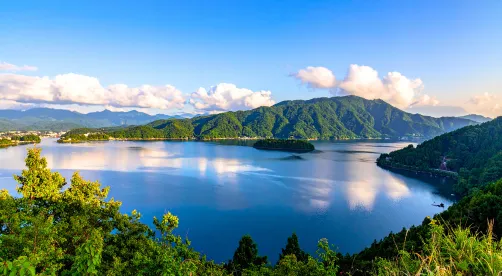 Kawaguchiko thuộc khu Ngũ Hồ Phú Sĩ, nổi tiếng với cảnh thiên nhiên trong lành và view núi Phú Sĩ. Khởi hành sớm giúp tăng cơ hội ngắm trọn ngọn núi trong thời tiết đẹp.