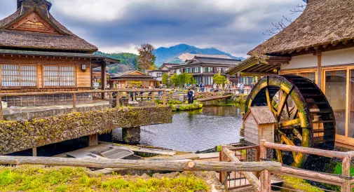 Oshino Hakkai là ngôi làng cổ nổi tiếng với các hồ nước trong vắt hình thành từ băng tan núi Phú Sĩ. Nhà mái tranh và không khí thanh bình giúp du khách cảm nhận đời sống Nhật xưa.