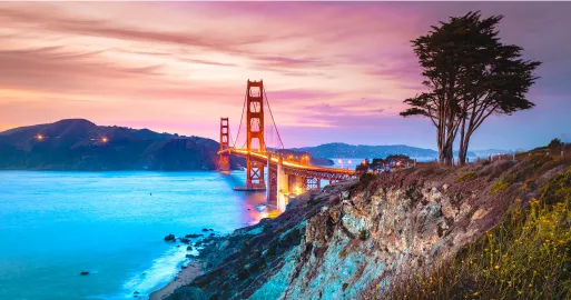 Biểu tượng nổi tiếng nhất của San Francisco với sắc đỏ cam đặc trưng, bắc qua eo biển rộng lớn, mang đến khung cảnh ngoạn mục và những góc chụp hình ấn tượng.