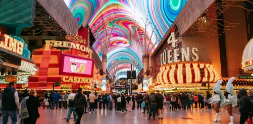 Khu phố lâu đời nhất của Las Vegas, nổi bật với mái vòm LED khổng lồ, ánh đèn rực rỡ và không khí sôi động, mang đến góc nhìn khác biệt so với Las Vegas Strip hiện đại. (tham quan bên ngoài)
