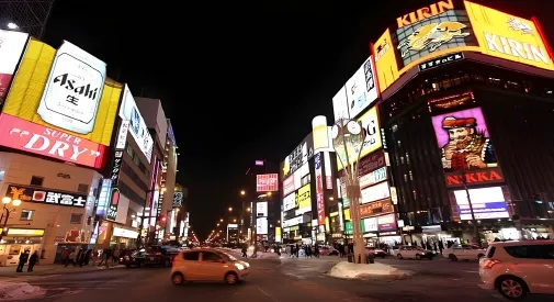 Khám phá Susukino, khu phố đèn neon rực rỡ nổi tiếng với ẩm thực Hokkaido và không khí náo nhiệt đầu năm.