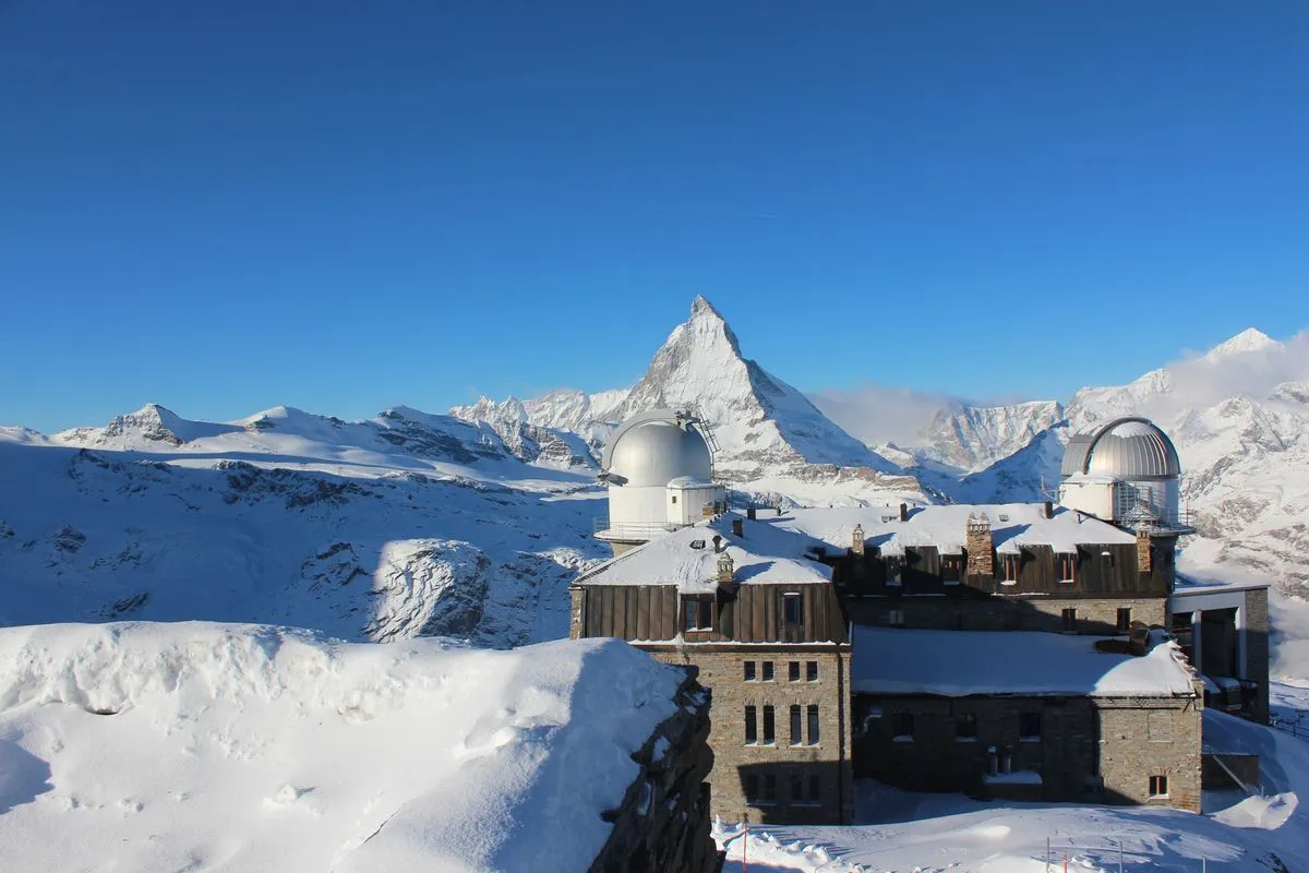 Từ đây mở ra toàn cảnh 360° của dãy Alps với Matterhorn, các sông băng và hơn 20 đỉnh núi trên 4.000m.📍 Matterhorn – biểu tượng quốc gia của Thụy Sĩ, được xem là ngọn núi đẹp nhất châu Âu.