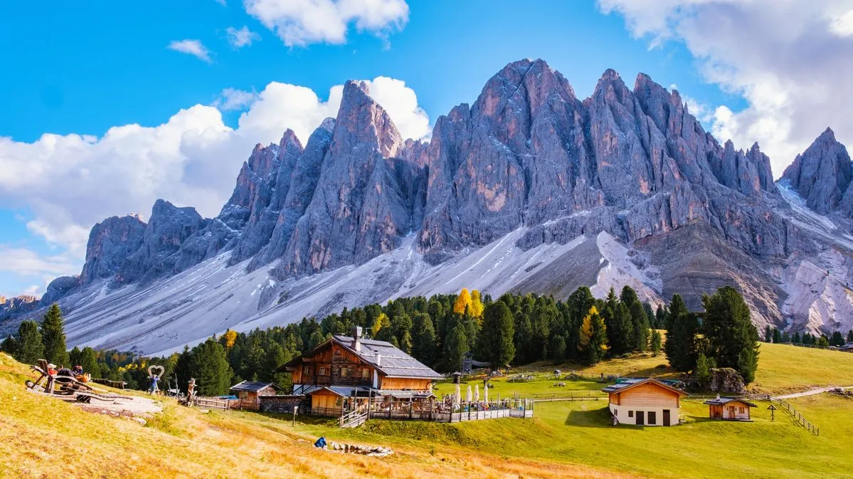 với những ngôi làng nhỏ yên bình nằm nép mình dưới chân dãy núi Geisler hùng vĩ. Hình ảnh nhà thờ nhỏ giữa thung lũng xanh đã trở thành biểu tượng của Dolomites
