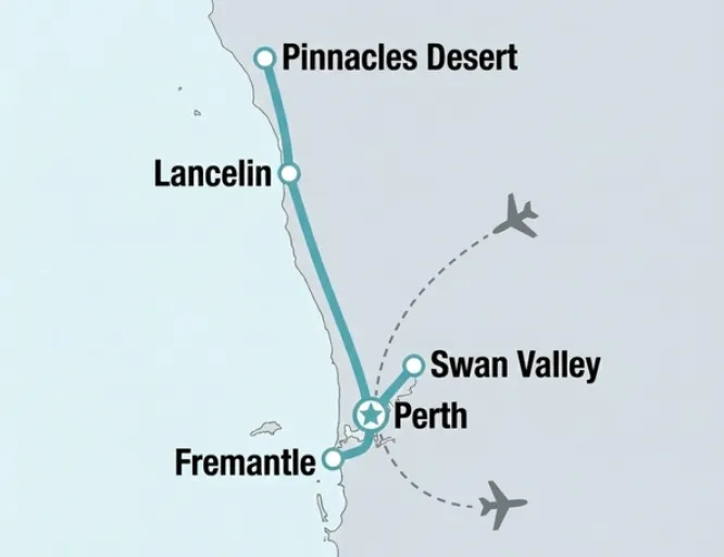 Khám phá một nước Úc rất khác tại bờ Tây: Yên bình, hoang sơ và đầy quyến rũ. Tour đưa du khách check-in tại sa mạc đá Pinnacles huyền thoại, thử thách trượt cát tại Lancelin và thưởng thức rượu vang tại Swan Valley. Trải nghiệm nhịp sống “chill” tại phố cổ Fremantle, mua sắm thả ga tại Watertown Outlet và tận hưởng dịch vụ xe riêng tiện nghi xuyên suốt hành trình cùng Passport Lounge.